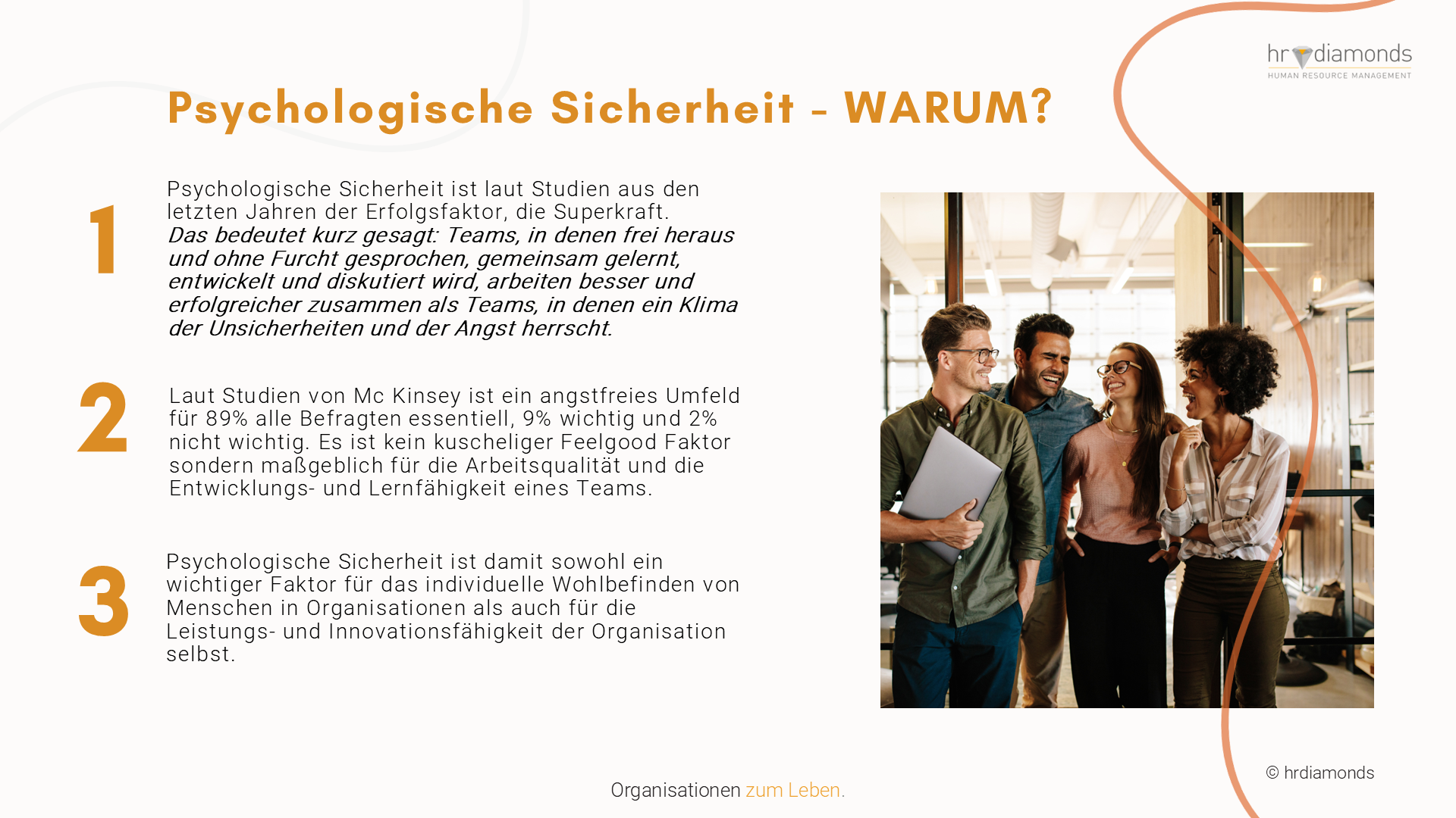 If you answered YES to these points, you are a clear advocate of PSYCHOLOGICAL SAFETY. It is a strong success factor, because studies have shown that “teams in which people speak freely and without fear, learn, develop and discuss together, work better and more successfully together than teams in which a climate of uncertainty and fear prevails. “ (Karin Vollbracht)